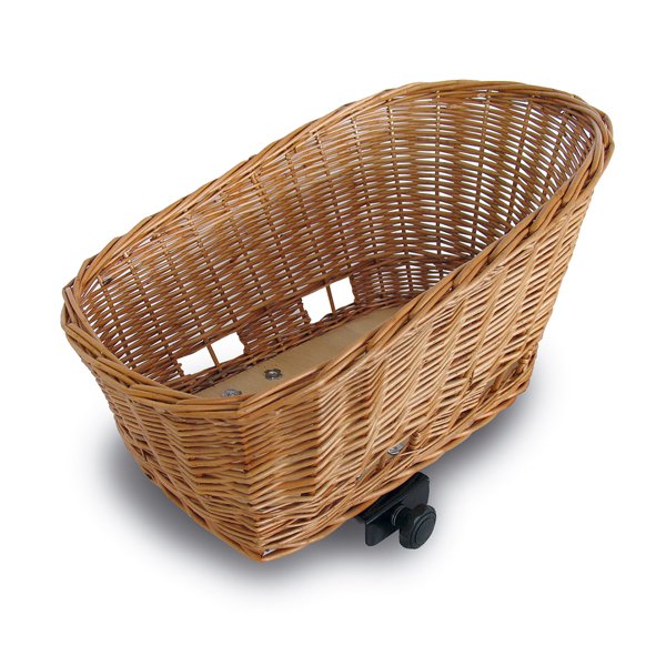 Gemaakt van riet, middelste maat (45 cm). Voor bevestiging op de bagagedrager, afneembaar, inclusief universele klemsluiting SENNA, geschikt voor veel dragers en vele verschillende buisdiktes (6-20mm), inclusief kussentje, naturel afgelakt.