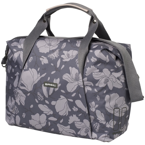 Basil Magnolia Carry All Bag. Fietsschoudertas, waterdicht d.m.v. meegeleverde regenhoes, gemaakt van polyester, met binnenvak, voorvak, waterkerende ritssluiting, hengsels, afneembare schouderriem, binnenvoering, bevestigingsmogelijkheid LED, Hook-On System, reflectie, inhoud: 18L, Blackberry.