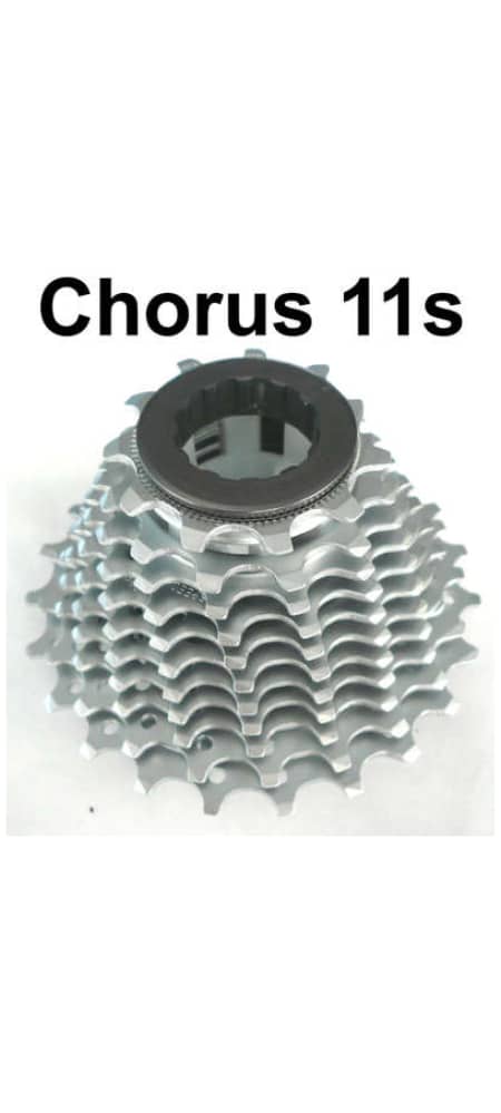 Campagnolo Chorus 11-speed cassette, voor stil en geruisloos schakelen. De lichte aluminium spider houdt het gewicht laag zonder dat dit ten koste van de prestaties gaat. De 11 stalen kransjes met nikkel/chroom finish zorgen voor een lange levensduur.
