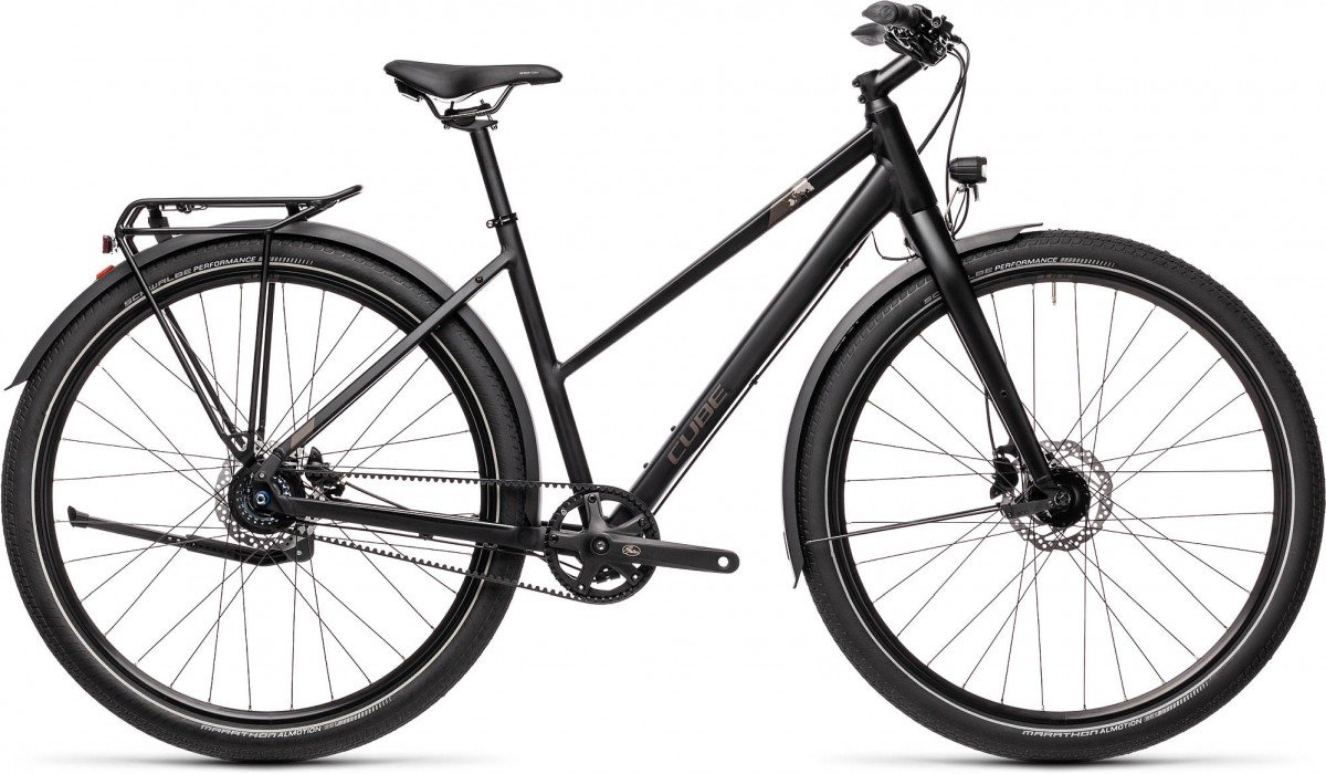 At CUBE we believe that practical, durable bikes can also be fun. The Travel Pro's Shimano 8-speed hub gear and Gates belt drive is so clean, quiet and easy to live with, you'll wonder how you managed without it. Powerful Shimano hydraulic disc brakes, grippy 29er Schwalbe tyres and full-length mudguards keep you safe in all weathers. And the semi-integrated carrier, kickstand and dynamo-powered lighting system ensure you're ready for any journey.