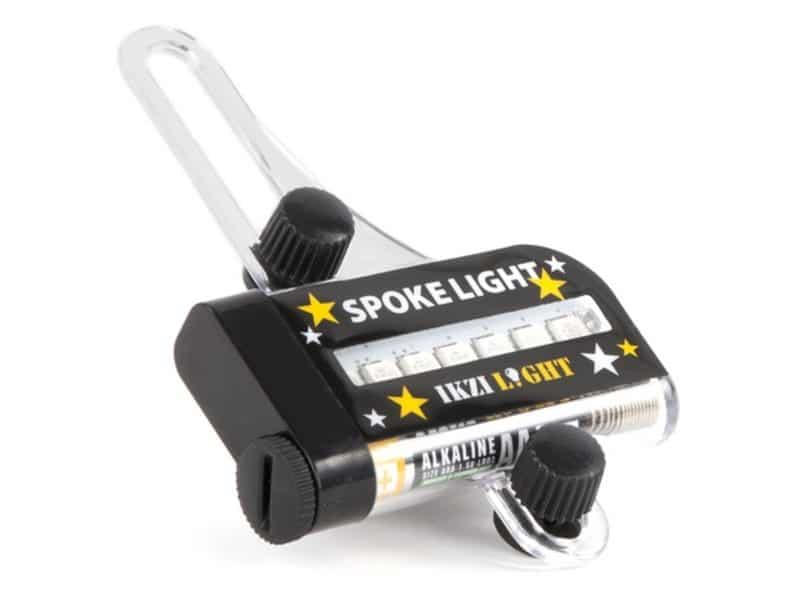 Het IKZI- Spaakverlichting bestaat uit 7 led in 8 verschillende kleuren, die je eenvoudig op elk fietswiel kunt plaatsen al dan wel niet met behulp van de meegeleverde adapter. Het spaaklicht gaat automatisch aan in het donker en bij beweging
