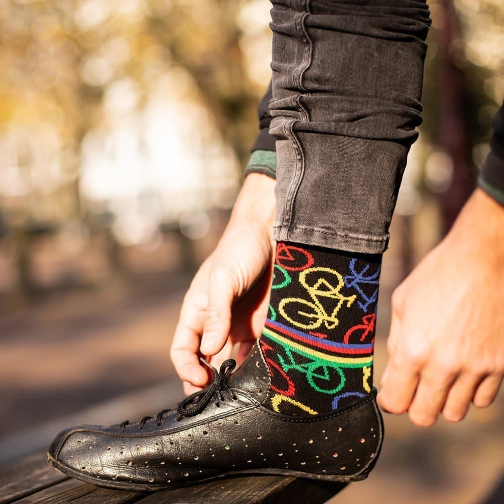 Le Patron sokken zijn van hoogwaardige kwaliteit met herkenbare wielerdesigns in vrolijke kleuren. Bestel daarom nu deze Le Patron Casual sokken Bicycle socks bicycle multi