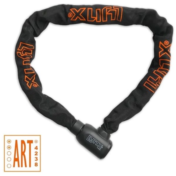 With this 100 cm long ART 2 chain lock from LYNX, every bike is maximally secured against theft. The lock has a fixed head, making it easy to use. The neatly finished lock head has a sliding cover to keep out dirt and moisture. This lock makes it possible to take out theft insurance for the bicycle thanks to the ART 2 quality mark. The 9 mm thick chain is encased in a soft nylon cover to prevent paint damage to the bicycle. 2 keys included.
