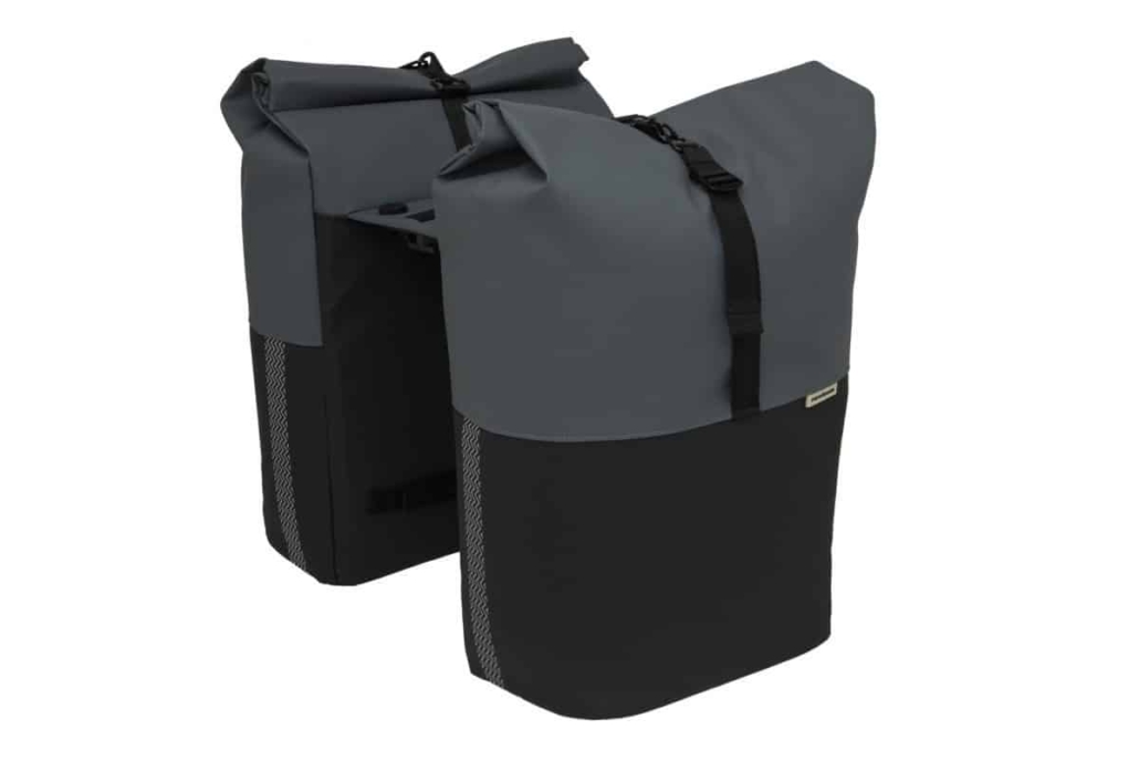 New Looxs fietstas dubbel Nyborg Nyborg MIK, gemaakt van waterafstotend polyester, roll top sluiting en een extra ritsvak