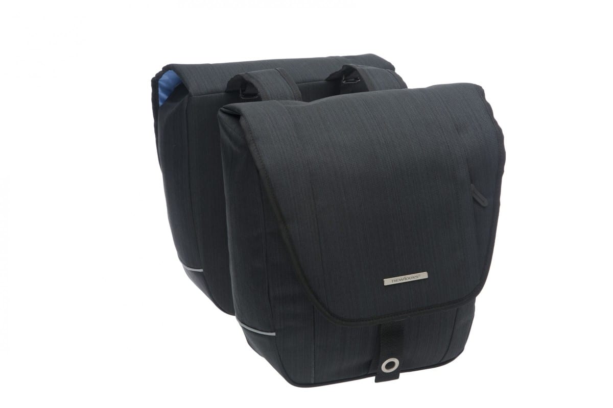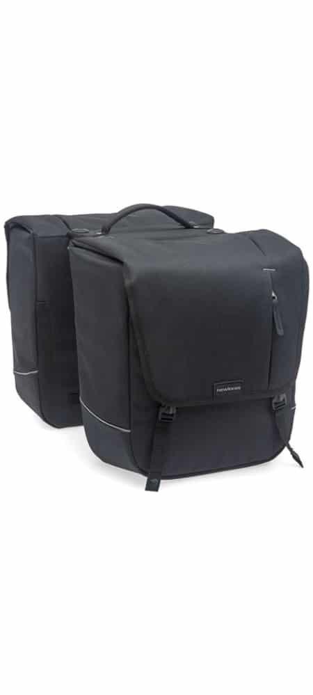 dubbele fietstas gemaakt van waterafstotend polyester. hoofdvak met 3 extra ritsvakken Met snelsluiting. Reflectie aan beide zijden.