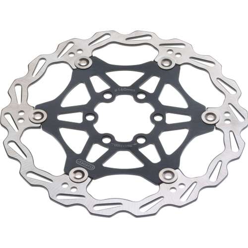 Elvedes remschijf 160mm zwart, Floating Rotor ZWART 160mm RVS+Aluminium kern, 6-gaats, gewicht 105 gram geleverd met boutjes 2012036
