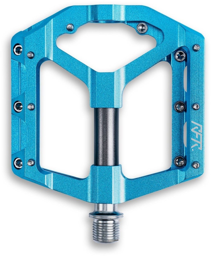 De platte en lichte aluminium body van het RFR SLT 2.0 platformpedaal draait met meervoudig afgedichte SLS-glijlagers rond een stijve CrMo-stalen as. De zestien antislip-pinnetjes, acht aan elke kant, zijn snel en makkelijk verwisselbaar. Met nog geen 300 gram zijn deze pedalen erg licht.