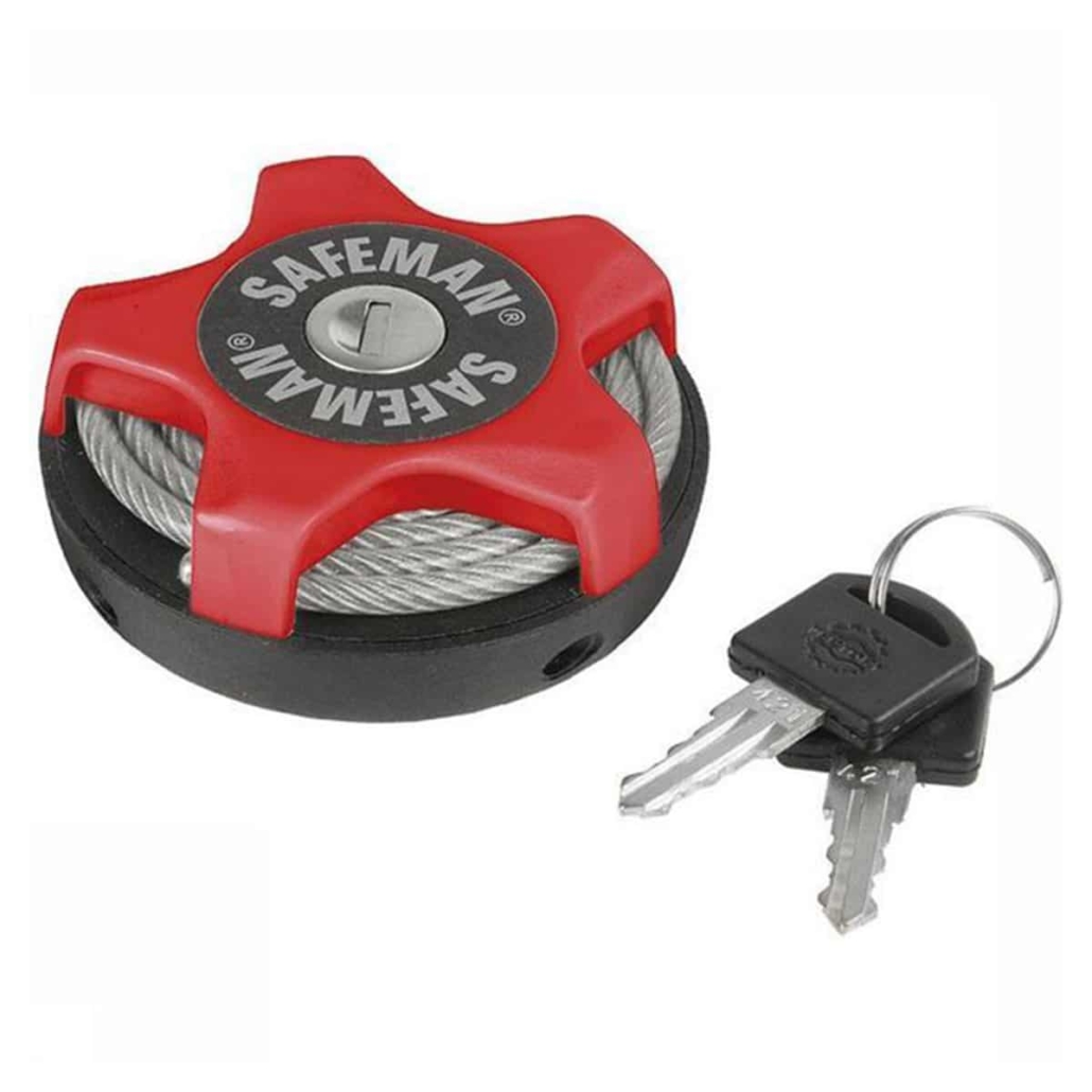 Klein & Licht past zelfs in de broekzak en weegt bijna niets Eenvoudig & Snel haal de kabel om je materiaal en een vast object, terug het slot in, klaar! Multifunctioneel handig voor racefiets, mountainbike, maar ook ski’s, buggy, koffer en meer! Kwaliteit robuust, versterkt kunststof beslag, stevige gevlochten edelstalen-kabel van 4mm. Moeilijker door te knippen en voorkomt knikken in de kabel bij gebruik, dus duurzamer! Optimaal 2-lussen systeem; makkelijk en bijv. voor het vastmaken van een helm Cool design sportieve uitstraling met een modern design. Rond dus geen uitstekende delen Geen gedoe met code-wieltjes of code onthouden, gewoon een sleuteltje, 2 zelfs! Objectief veiliger. De sleutelopening is afgedekt met een klepje, wat vocht (vries) en vuil tegenhoudt. SAFEMAN® – PRODUCT SPECIFICATIES Met de Safeman kan je materiaal volledig strak, zonder speling, vastgezet worden. Afmetingen Diameter 7,5 cm Hoogte 3 cm Kabellengte 75 cm Kabeldikte 4 mm Plastic coating op de kabel ter bescherming van het materiaal 1 mm Gewicht slot 125 gram Gewicht slot met verpakking 150 gram Kabelkracht Ca. 100 kg Geteste bruikbare temperaturen -20 °C ~ 50 °C Kleuren Rood / Zwart Wit / Zwart Blauw / Zwart