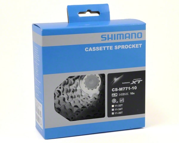 Shimano XT CS-M771 cassette 10-speed 11-36. Shimano XT 10-speed pignonpakket van de 771-serie Het beproefde XT-tandwielpakket is verkrijgbaar in drie kwaliteiten: 11-36 tanden. Werkt met alle Shimano-, Sram- en KMC-kettingen met 10 versnellingen. De beste functie is verzekerd in verband met Shimano Hyperglideketten. Via Hyperglide schakelt het zacht en belast. De aluminium drager zorgt voor een laag gewicht. Technische kenmerken van het XT 10-speed rondsel Externe invloeden op het schakelsysteem waren geminimaliseerd. Het resultaat is een schakelsysteem met nauwkeurige, consistent goede indexfunctie met duidelijk gedefinieerde vergrendelingspunten in alle versnellingsstanden.