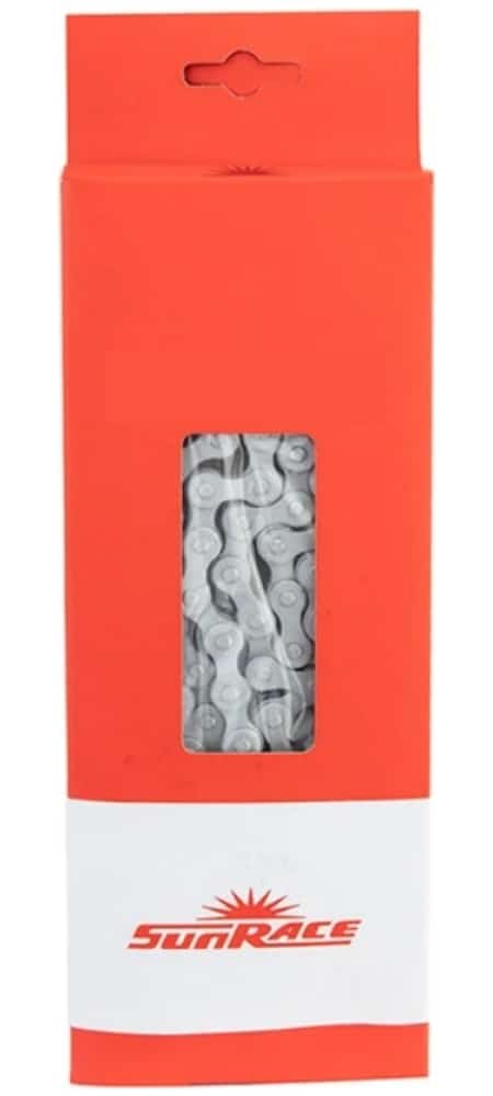 De SunRace CNM54 is een hoogwaardige ketting ontworpen voor 6- en 7-speed derailleurversnellingssystemen. Met een lengte van 116 schakels en een breedte van 3/32″ is deze ketting geschikt voor zowel stadsfietsen als mountainbikes. De ketting is vervaardigd uit hoogwaardig staal en heeft een grijze afwerking, wat zorgt voor een strakke uitstraling en bescherming tegen corrosie. Let op: deze ketting is niet geschikt voor frictieversnelling (non-indexed systemen).