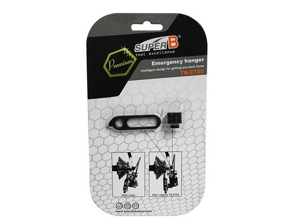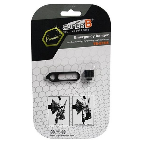 De SuperB noodsteun voor de achter derailleur is in een geval van schade hèt vervangingsonderdeel dat u thuis laat komen door het opnieuw bevestigen van de achter derailleur op de SuperB noodsteun. De universele derailleur pad wordt vervolgens door de snelspanner op zijn plek gehouden. U kunt circa de helft van de beschikbare versnellingen nog gebruiken en uw tocht vervolgen. Door het kleine formaat past het prima in de achterzak of in het zadeltasje. De noodsteun is geschikt voor fietsen met een quick release as tot 5 MM en een steekas tot 10MM.